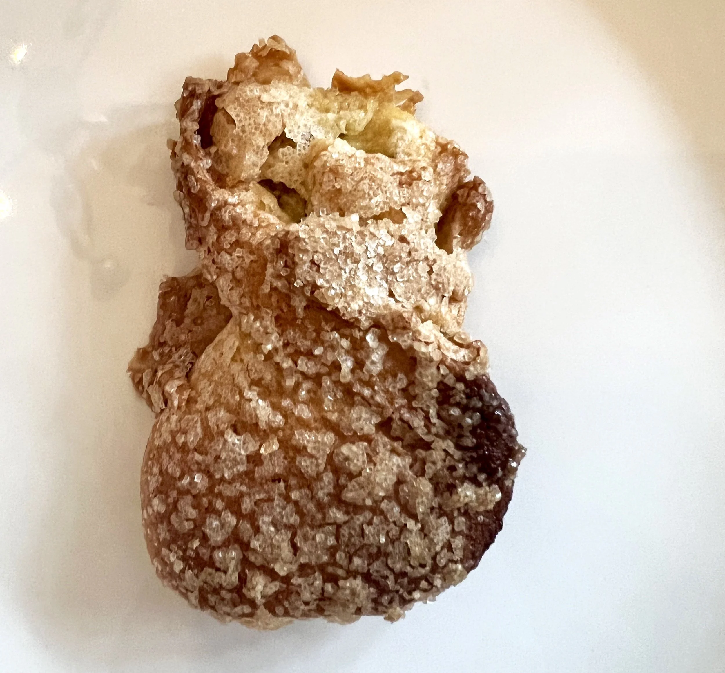 “No matter where it’s purchased, rugelach tastes familiar—buttery dough rolled around raisins and walnuts and caramelized with a rainfall of sugar on top.” p. 150