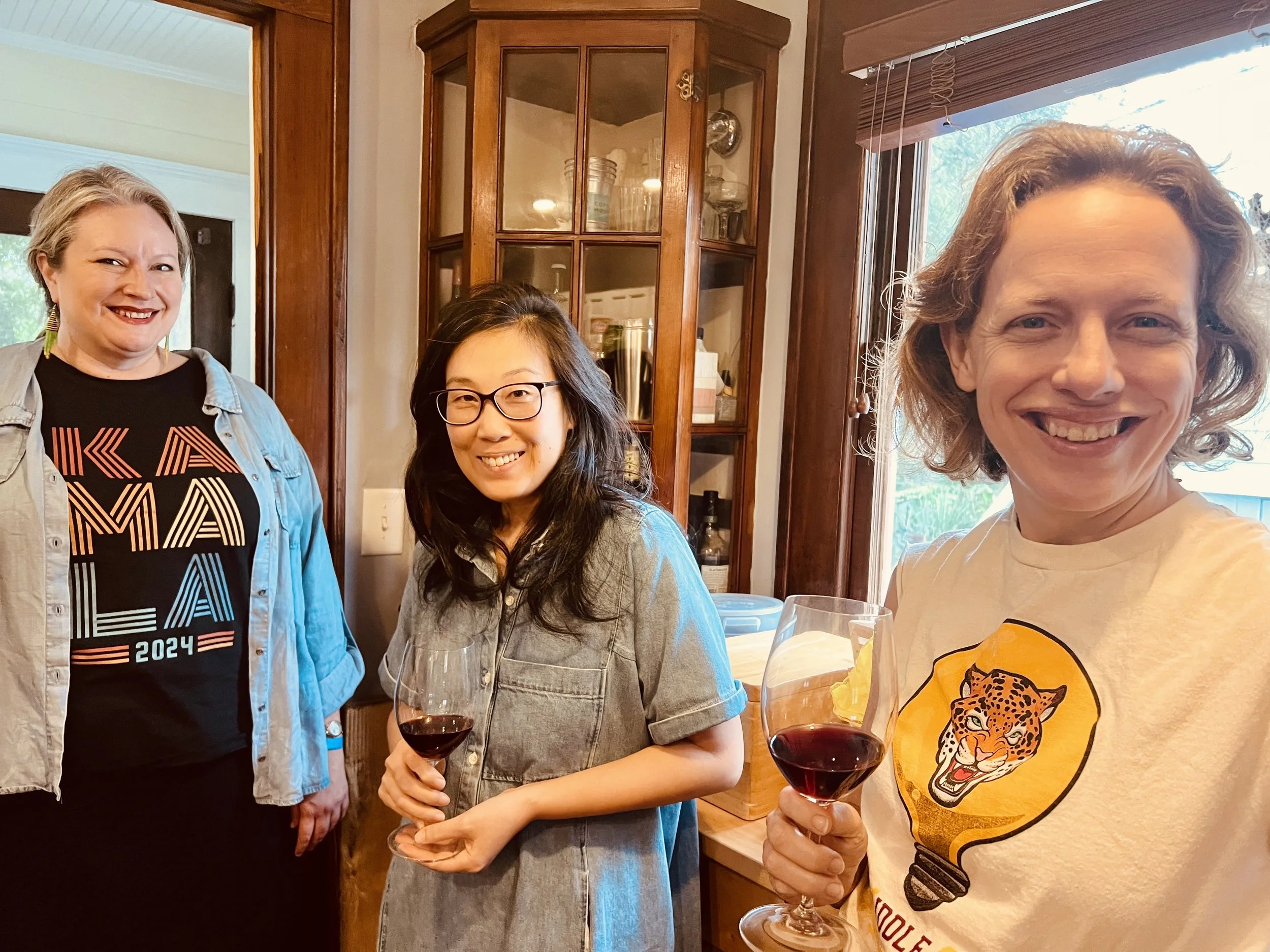“Jess got home just ahead of Catherine. She poured them each a generous glass of pinot and then got to work, crushing garlic, bruising rosemary, and dribbling olive oil over the chops while Catherine told engaging stories of a childhood that might’ve been imagined by James Herriot.” p. 115
